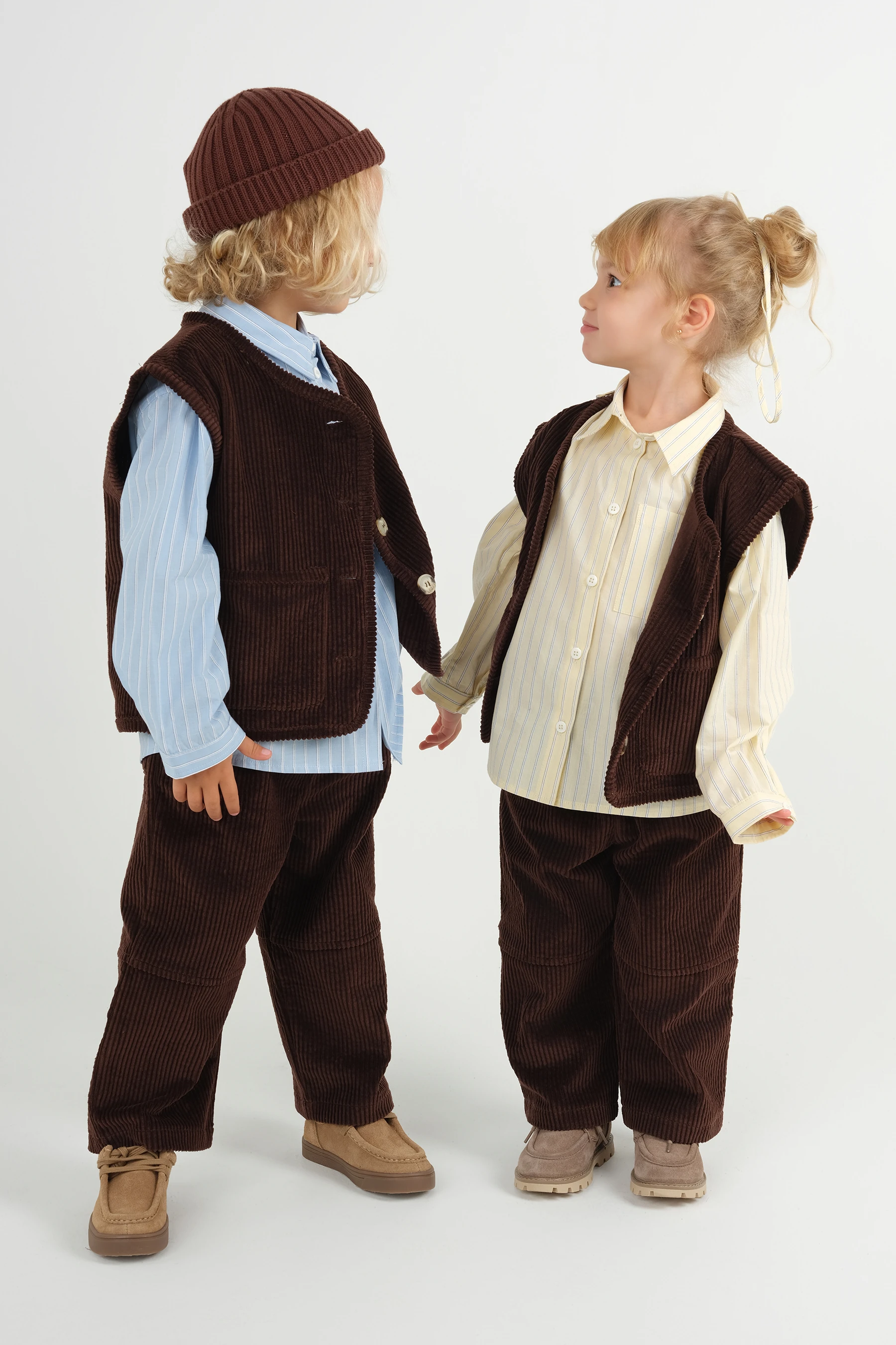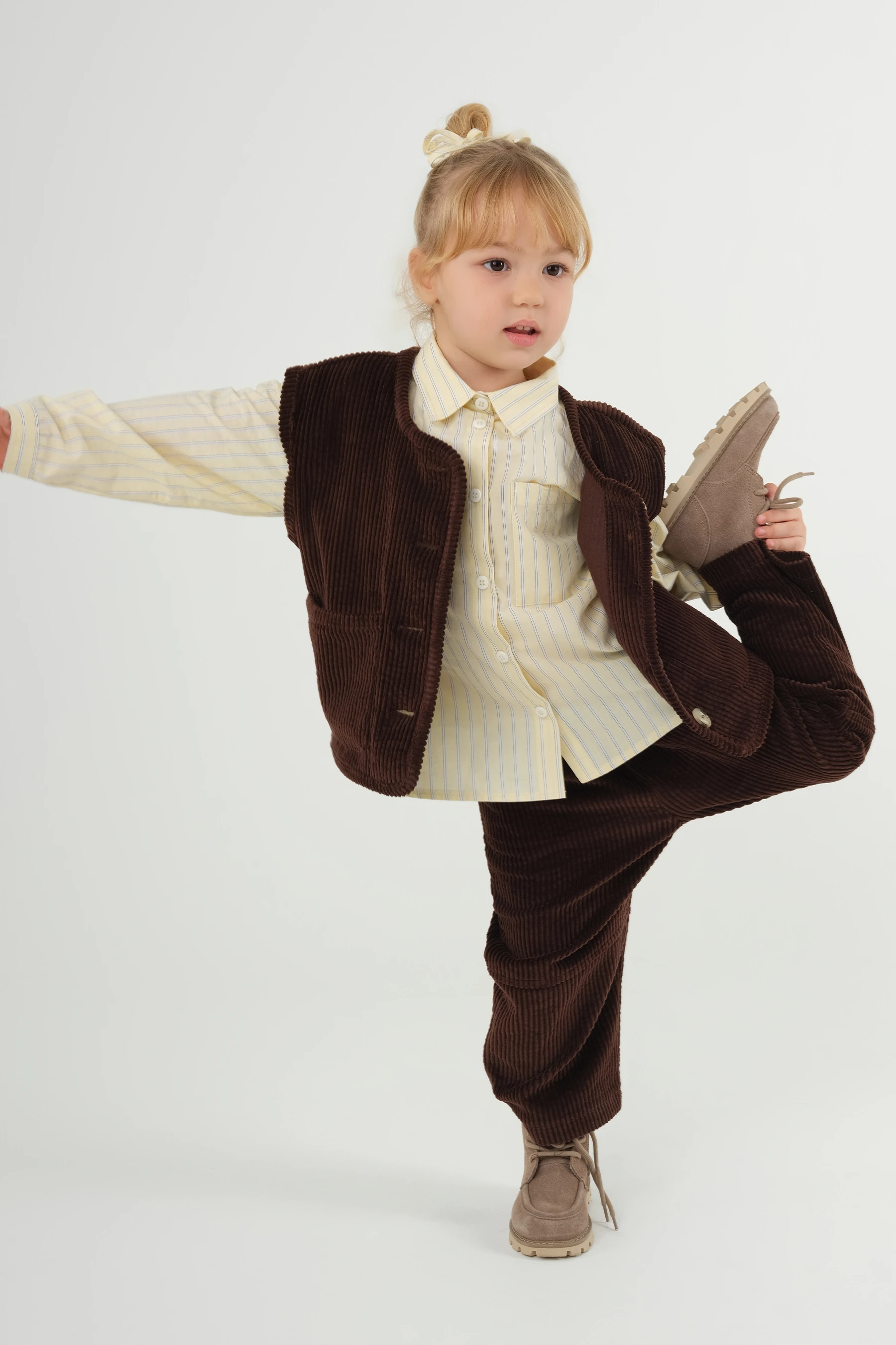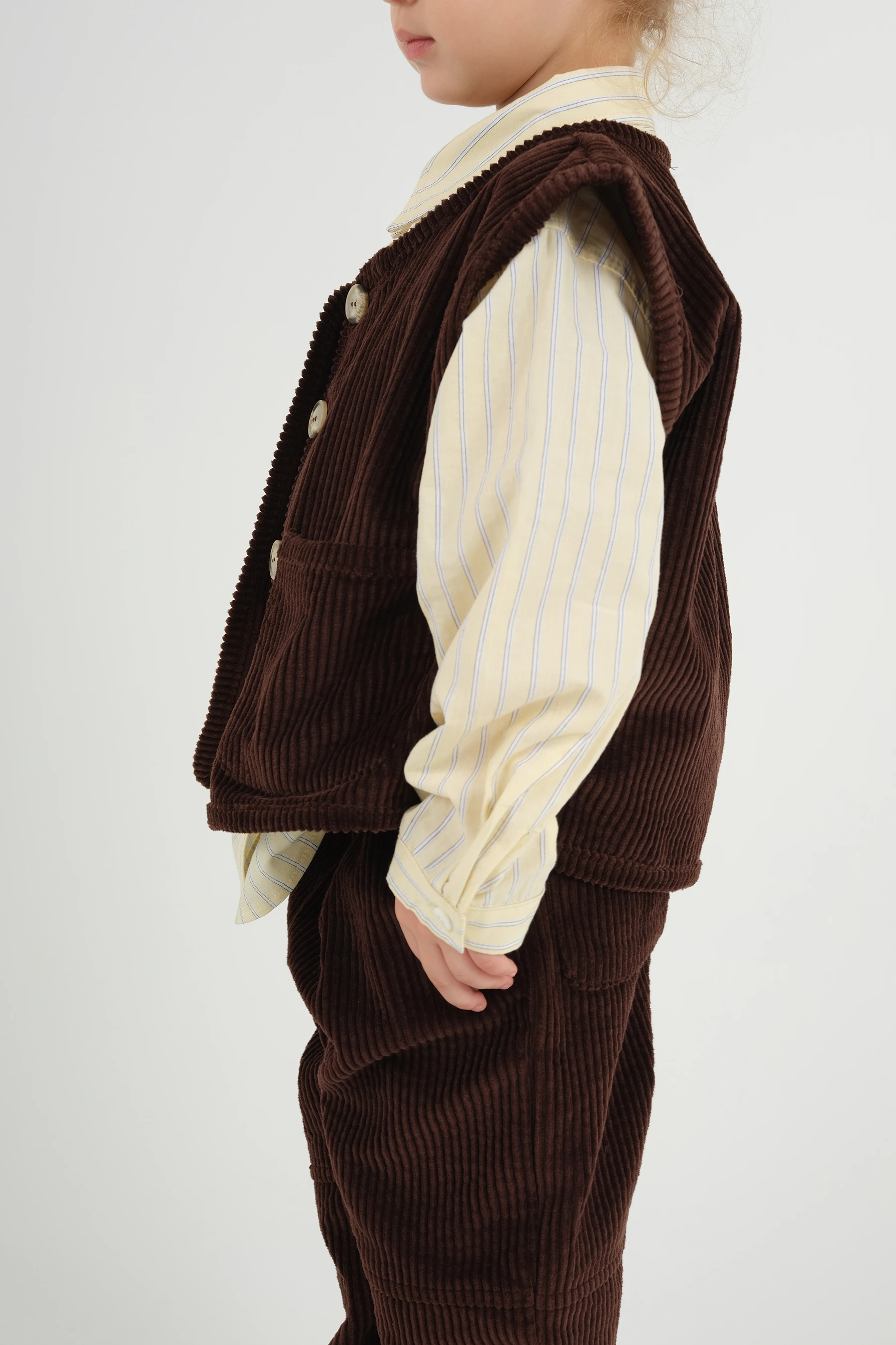 Pamuk kumaşlı, önü düğmeli,önde torba cepli, yakalı, kolları manşetli gömlek. Bol kalıptır. Mankendeki gibi bir duruş için tam yaş aralığını tercih edebilirsiniz.