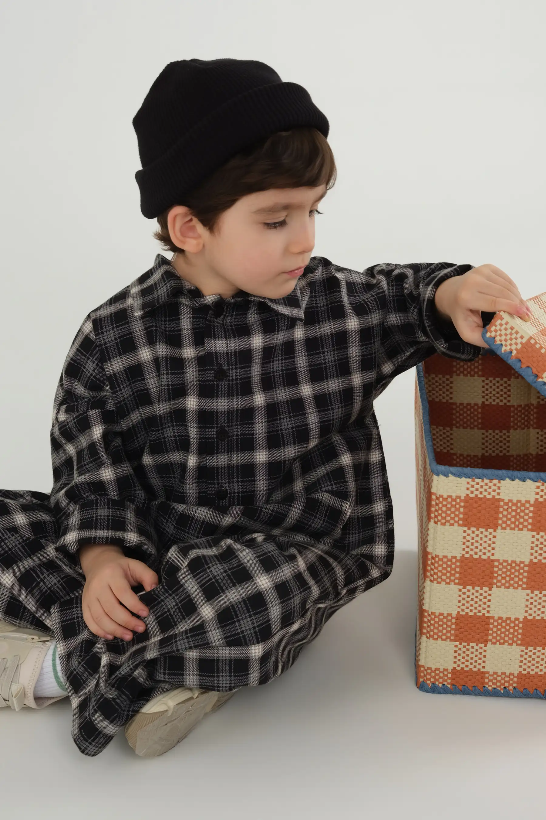 Pamuklu kumaştan üretilmiş ,ekose tulum. Önde iki adet torba cepli, yakalı, kolları manşetli, bol kalıp.