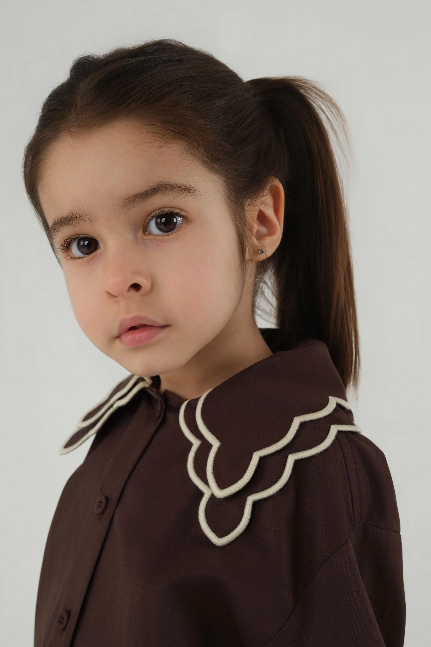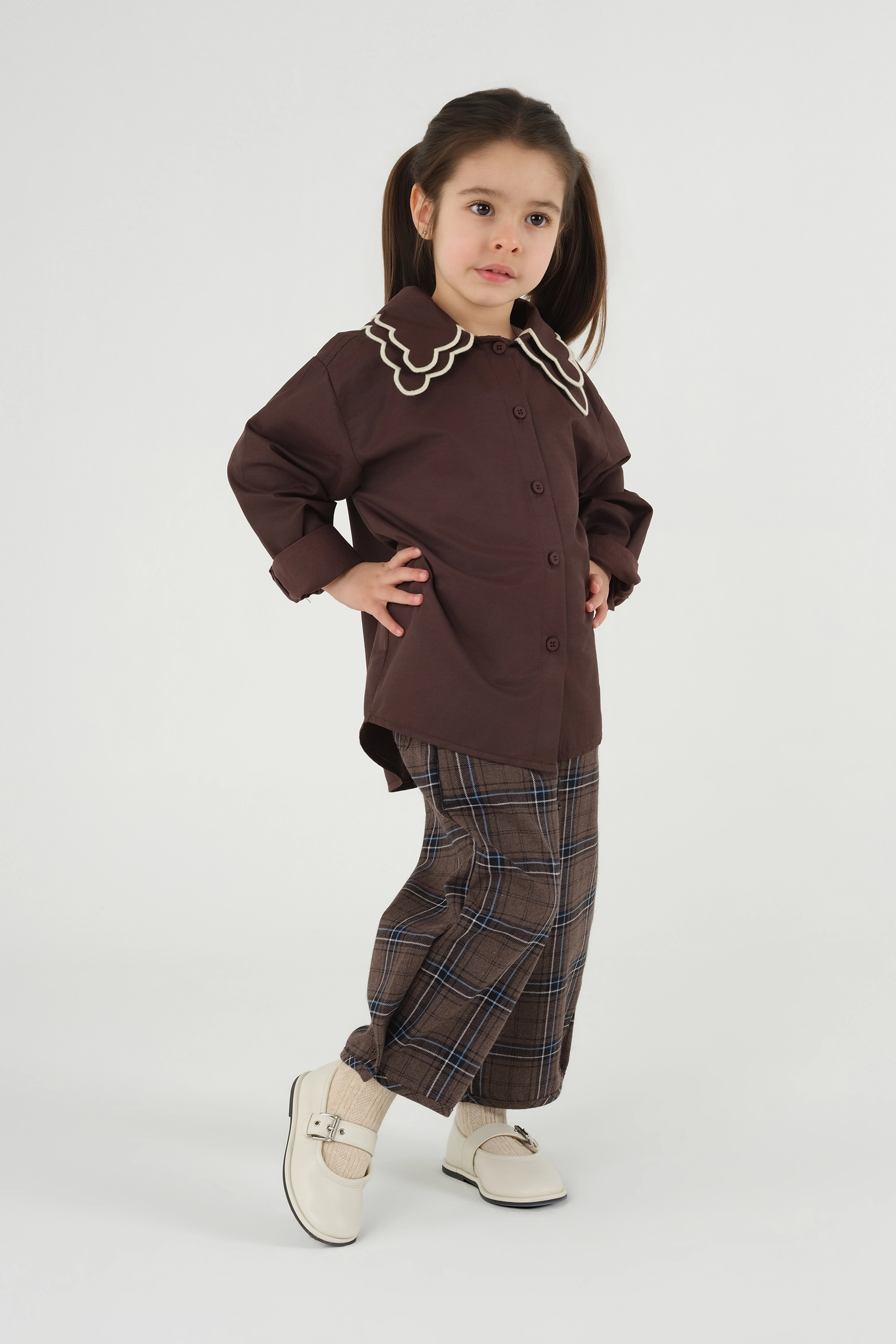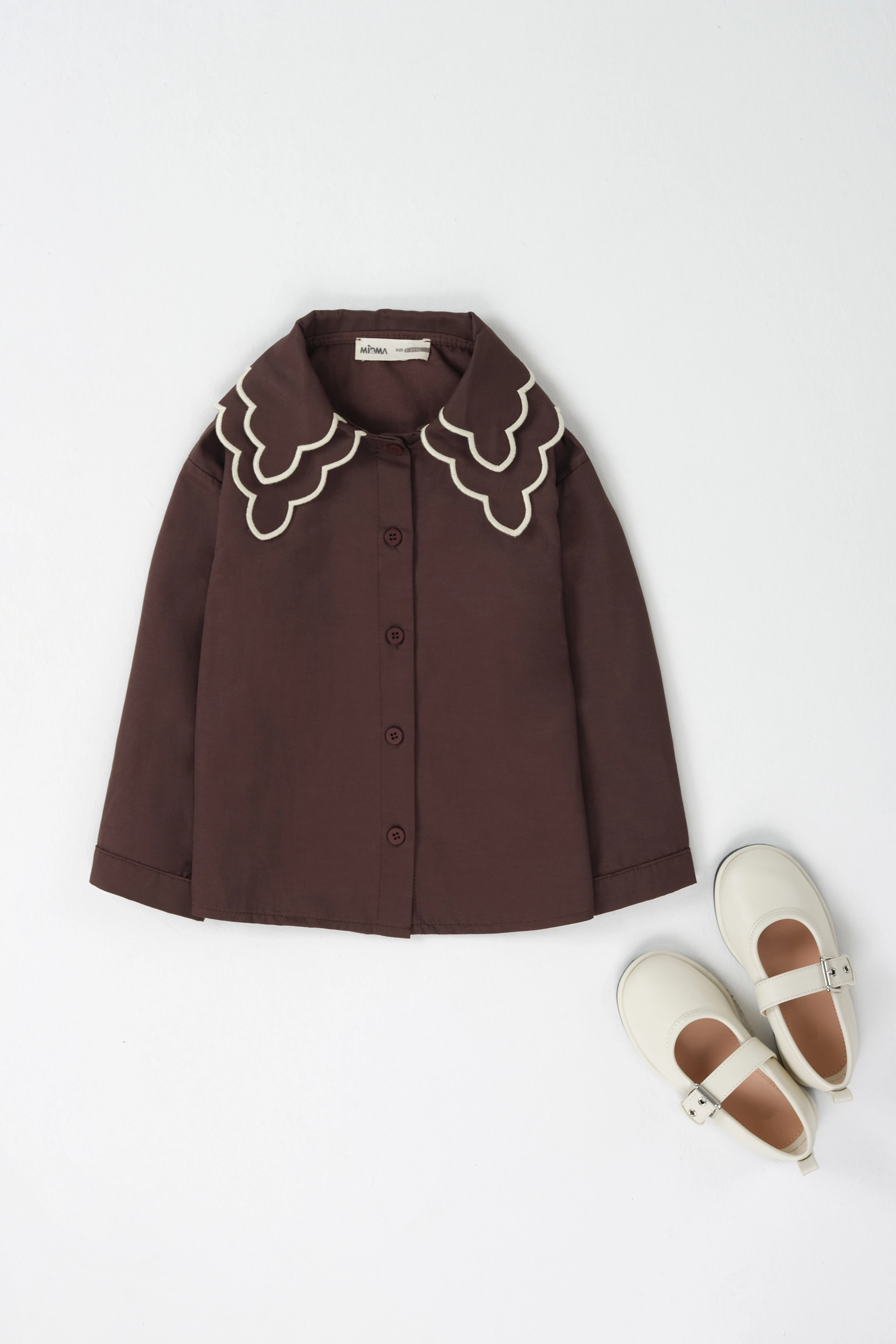 Ekru Nakışlı Gömlek Acı Kahve