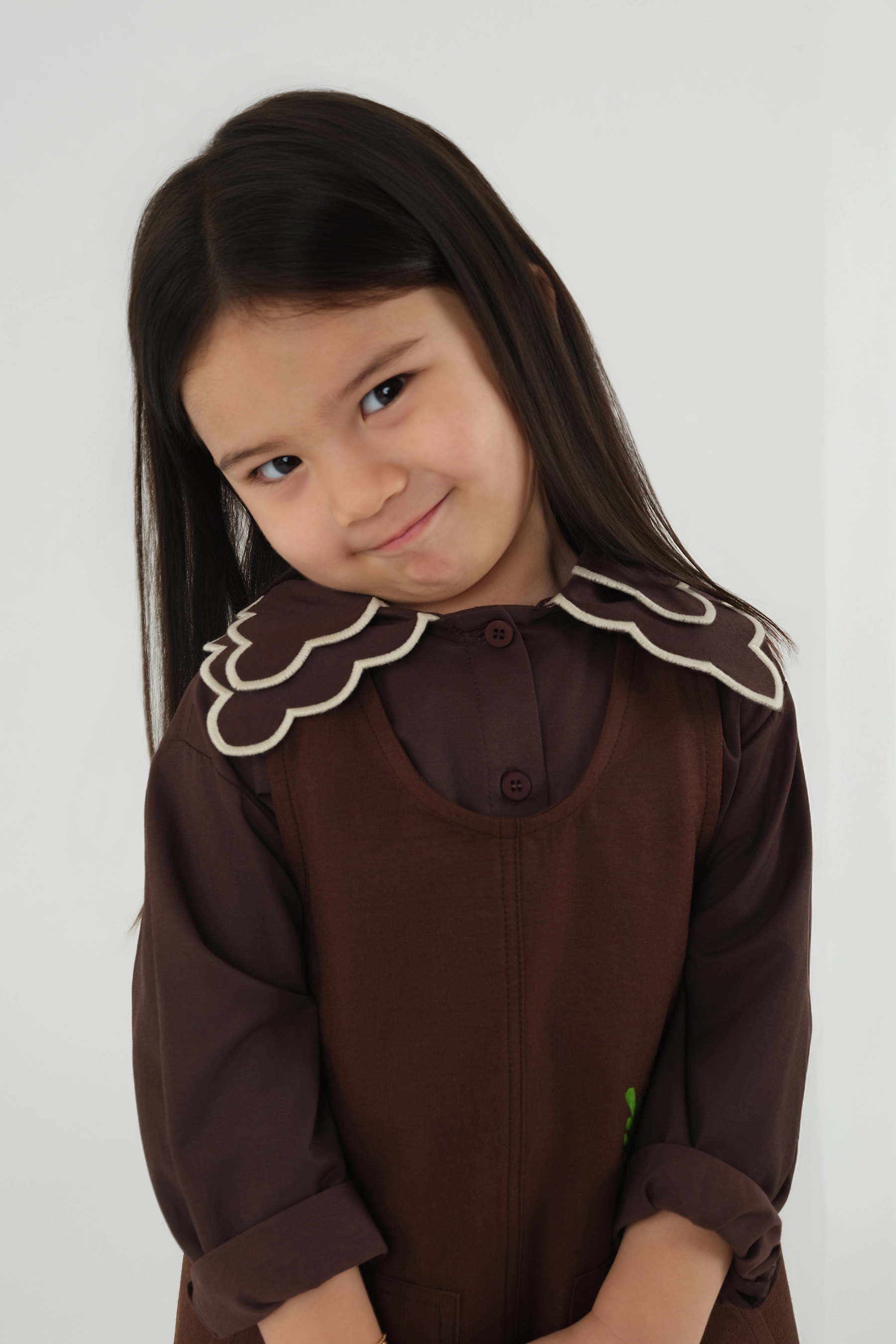 Pamuk kumaşlı, önü düğmeli,yakalı, kolları manşetli gömlek. Bol kalıptır. Mankendeki gibi bir duruş için tam yaş aralığını tercih edebilirsiniz.