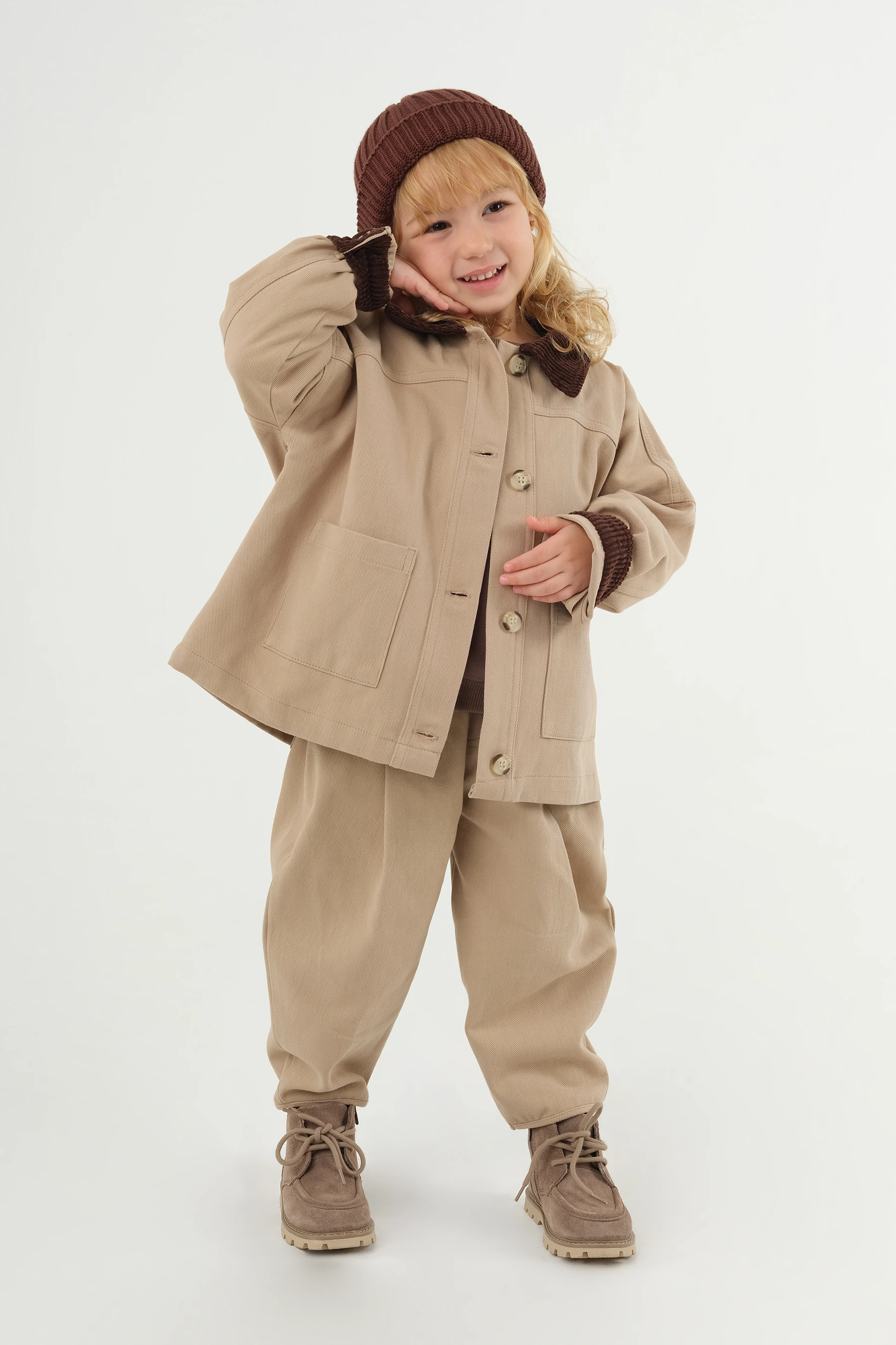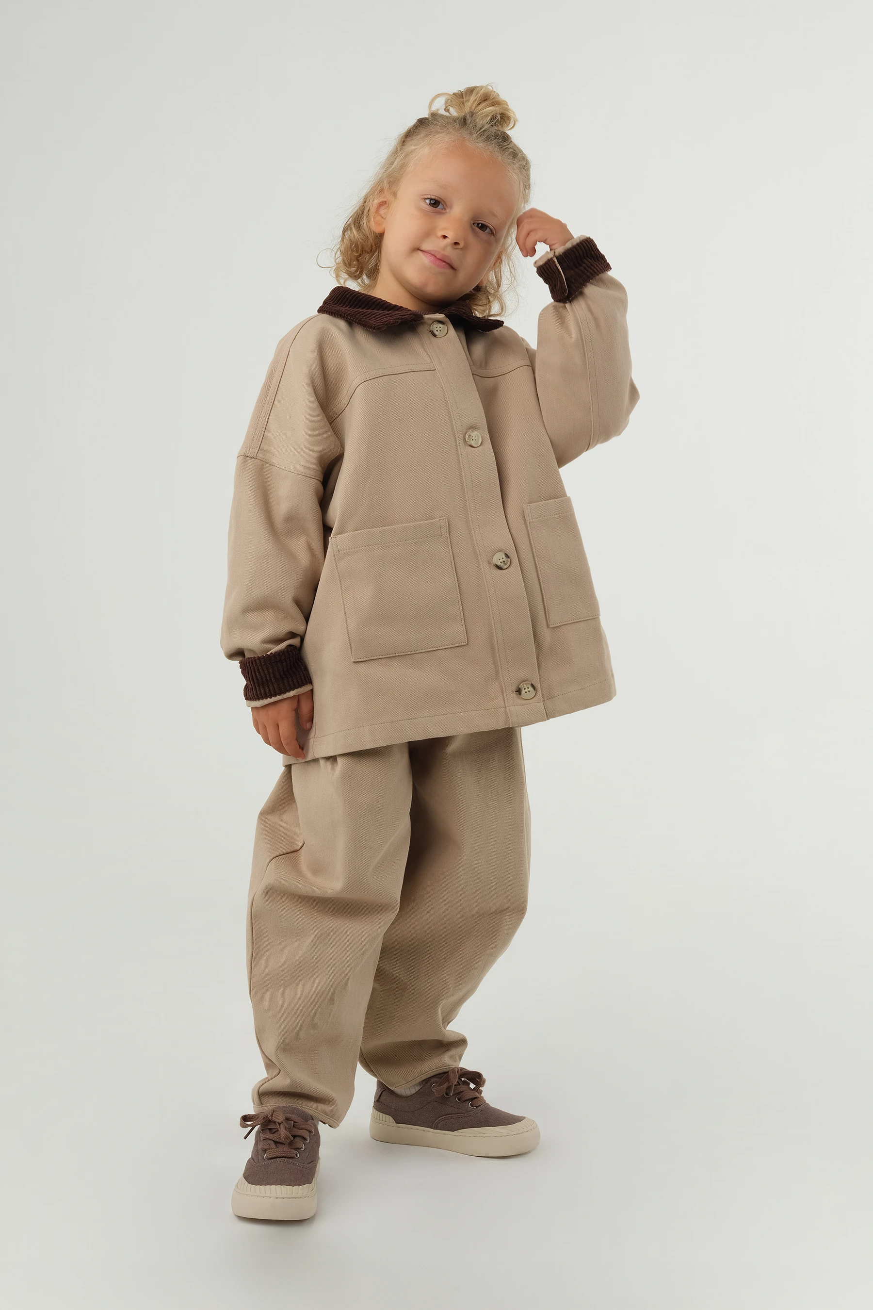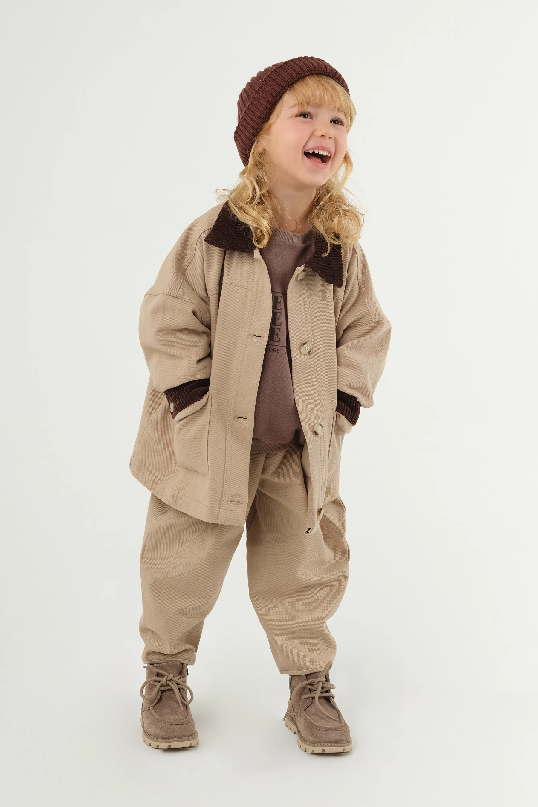 %100 Pamuk kumaştan üretilmiş, önü düğmeli,iki adet kapaklı torba cepli, yakası ve kol manşetleri kadife, önde ve arkada robalı ceket. Tam kalıptır. Mankendeki gibi bir duruş için tam yaş aralığını tercih edebilirsiniz.