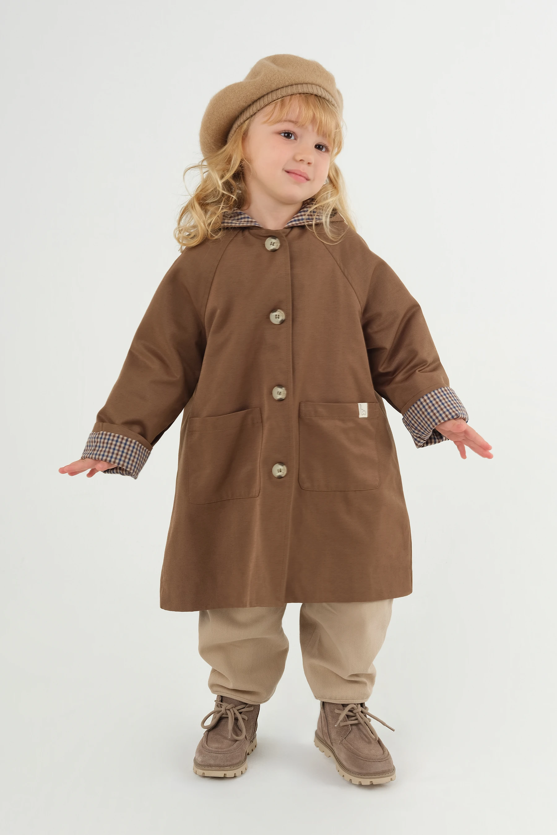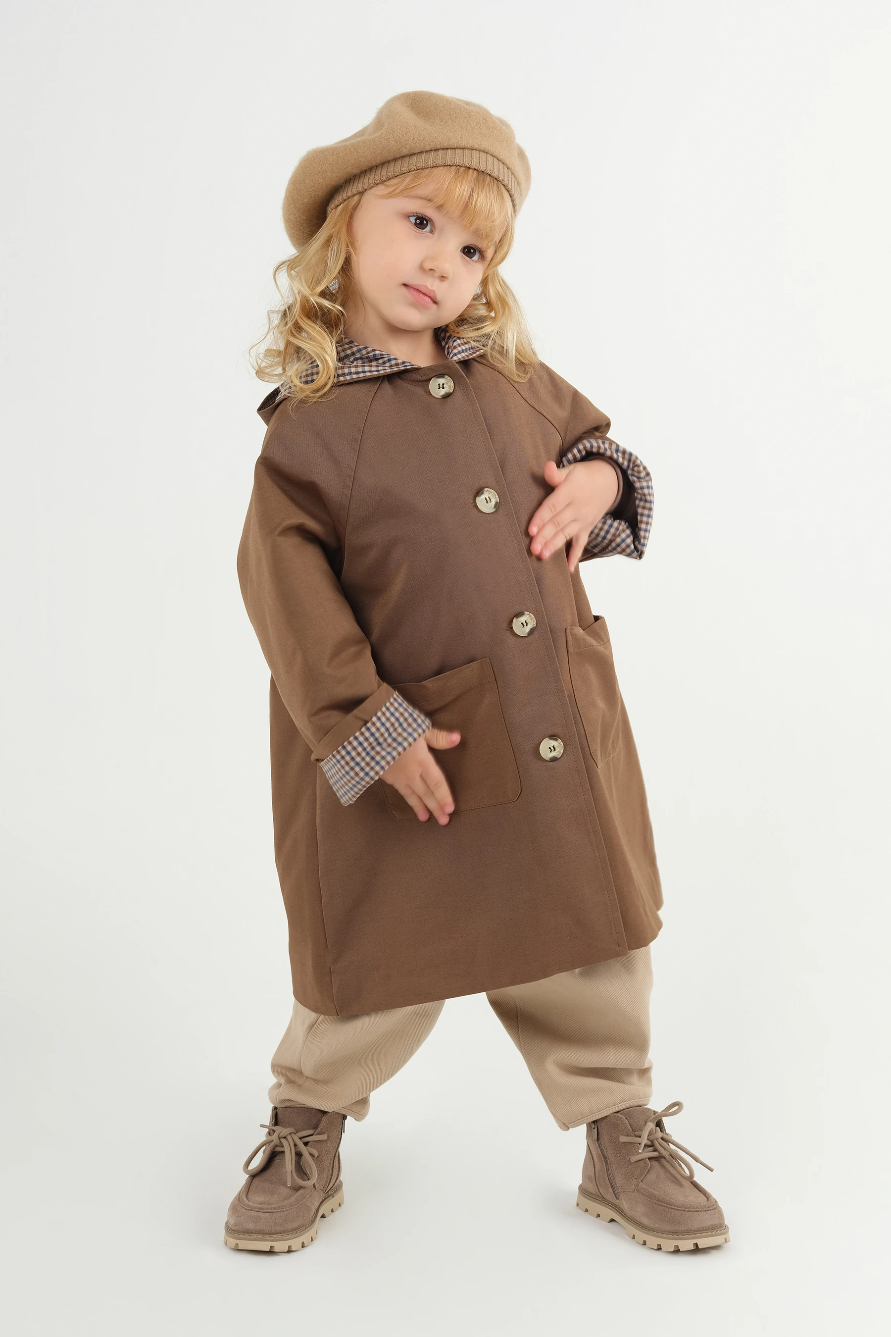 Kapüşonlu Ekose Astarlı Trençkot Kahve